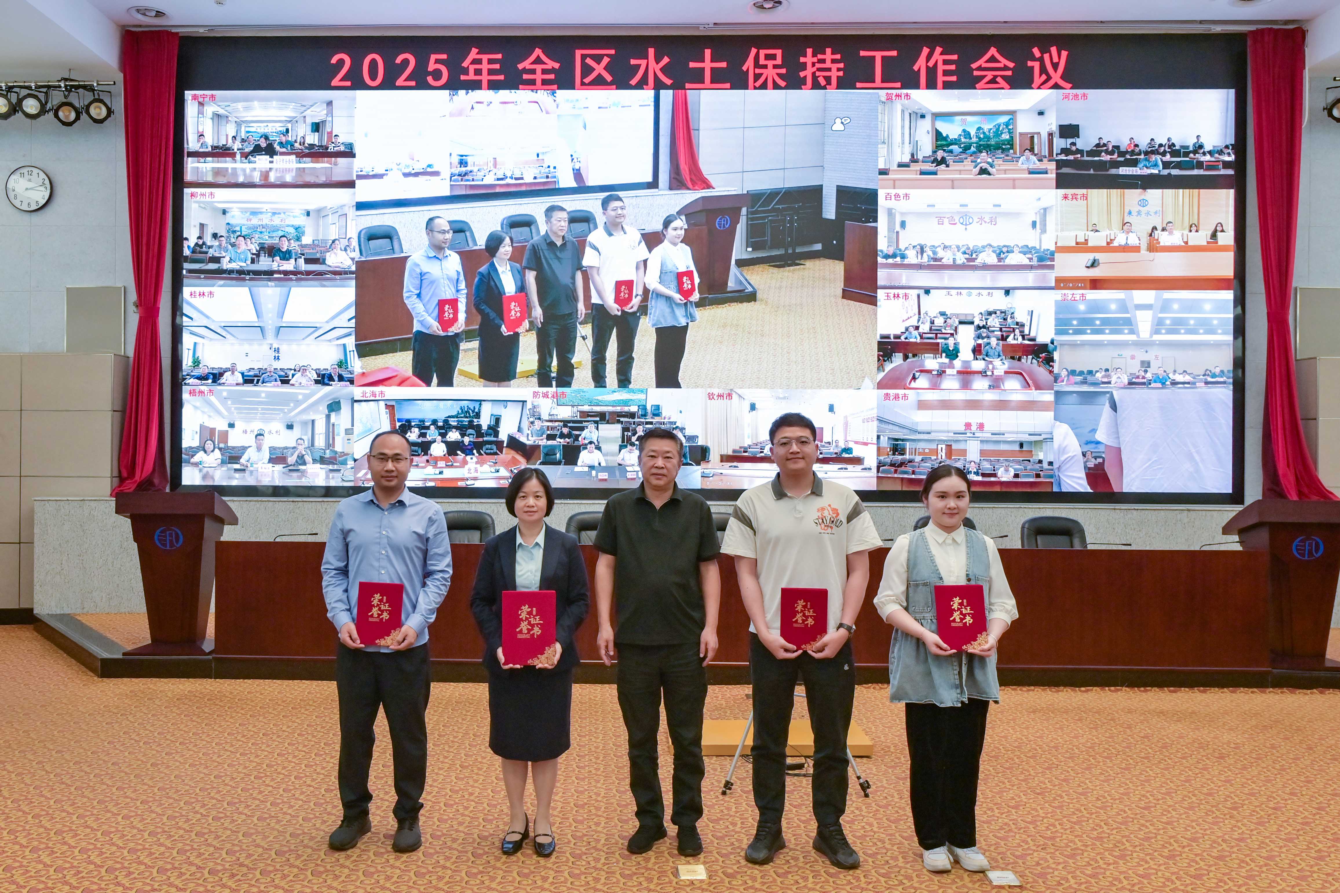 会议对2024年广西水利行业职业技能竞赛水土保持员项目获奖个人及单位代表进行了颁奖。南宁市水利局、贵港市水利局、来宾市水利局、环北部湾广西水资源配置有限公司、阳朔县水利局、灵川县水利局和苍梧县水利局作了经验交流发言。自治区水利厅有关处室、厅属有关单位负责同志在水利厅主会场参加会议,各市水利局水土保持工作分管领导及业务负责人在分会场参加会议。