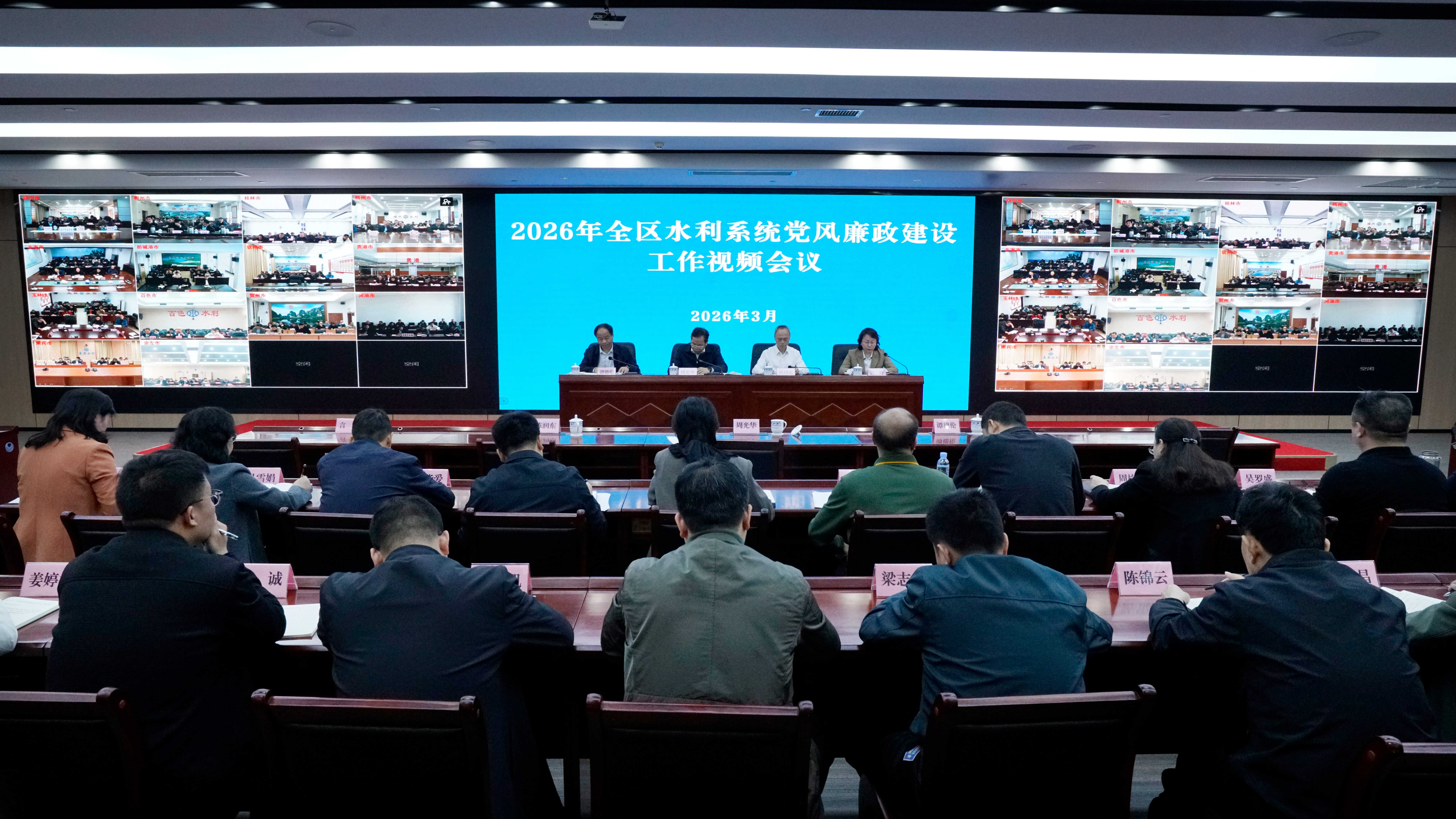 3月12日,自治区水利厅召开2026年全区水利系统党风廉政建设工作视频会议。会议全面贯彻落实党的二十大和二十届历次全会精神,深入学习贯彻习近平总书记关于党的建设的重要思想、关于党的自我革命的重要思想,深入贯彻落实二十届中央纪委五次全会和自治区纪委十二届六次全会的部署要求,总结2025年水利党风廉政建设和反腐败工作,分析当前水利系统党风廉政建设面临的形势,部署2026年重点工作任务。自治区水利厅党组书记周光华出席会议并讲话,厅党组成员、副厅长陈润东主持会议,厅党组成员、自治区纪委监委驻水利厅纪检监察组组长言玲作工作部署。