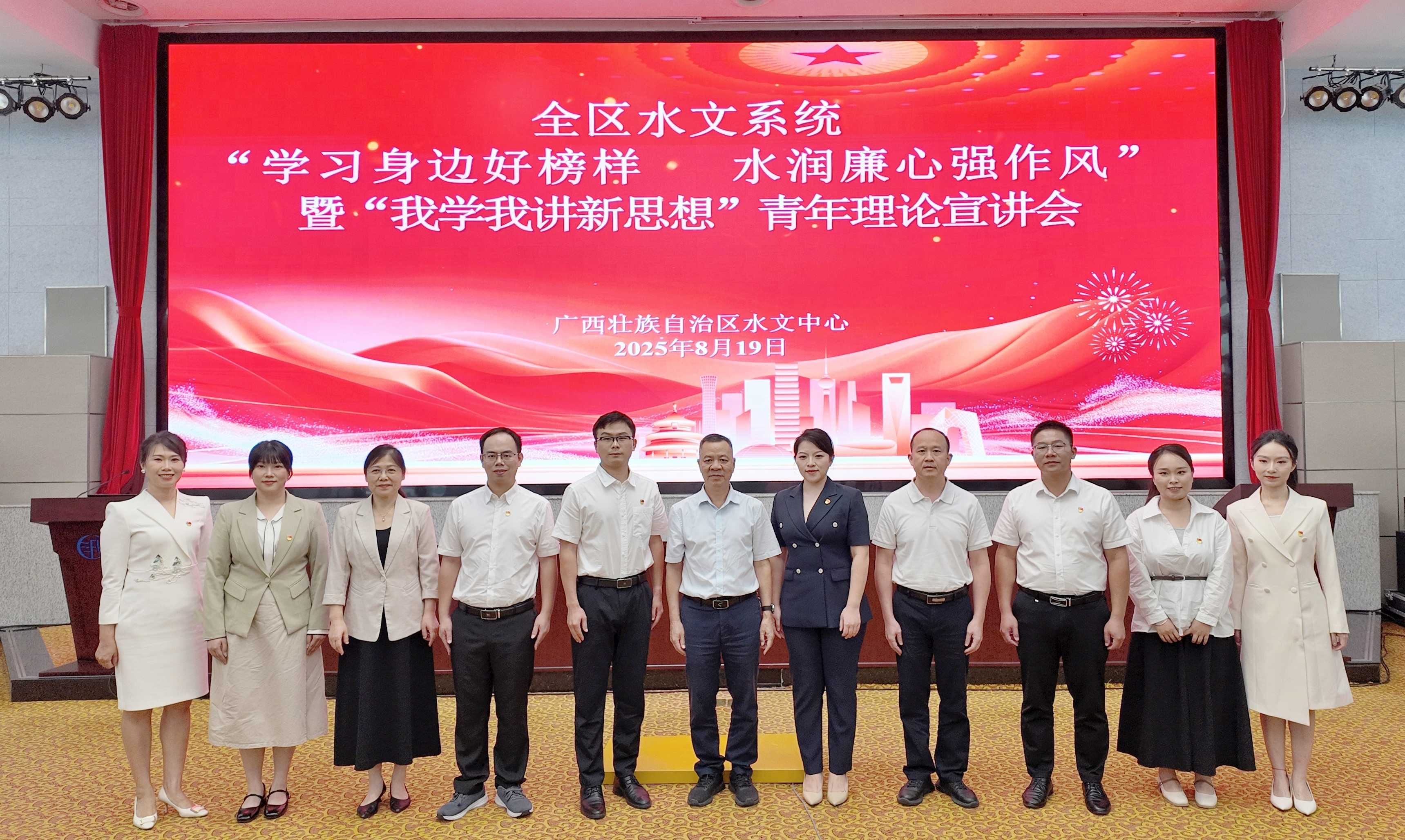 为了巩固深化深入贯彻中央八项规定精神学习教育成果,发挥榜样模范带动作用,加强水文青年理论武装,进一步推动清廉广西水文建设提质增效,引导广大水文党员干部职工崇尚先进、见贤思齐,8月19日,自治区水文中心党委在南宁举办全区水文系统“学习身边好榜样 水润廉心强作风”暨“我学我讲新思想”青年理论宣讲会。