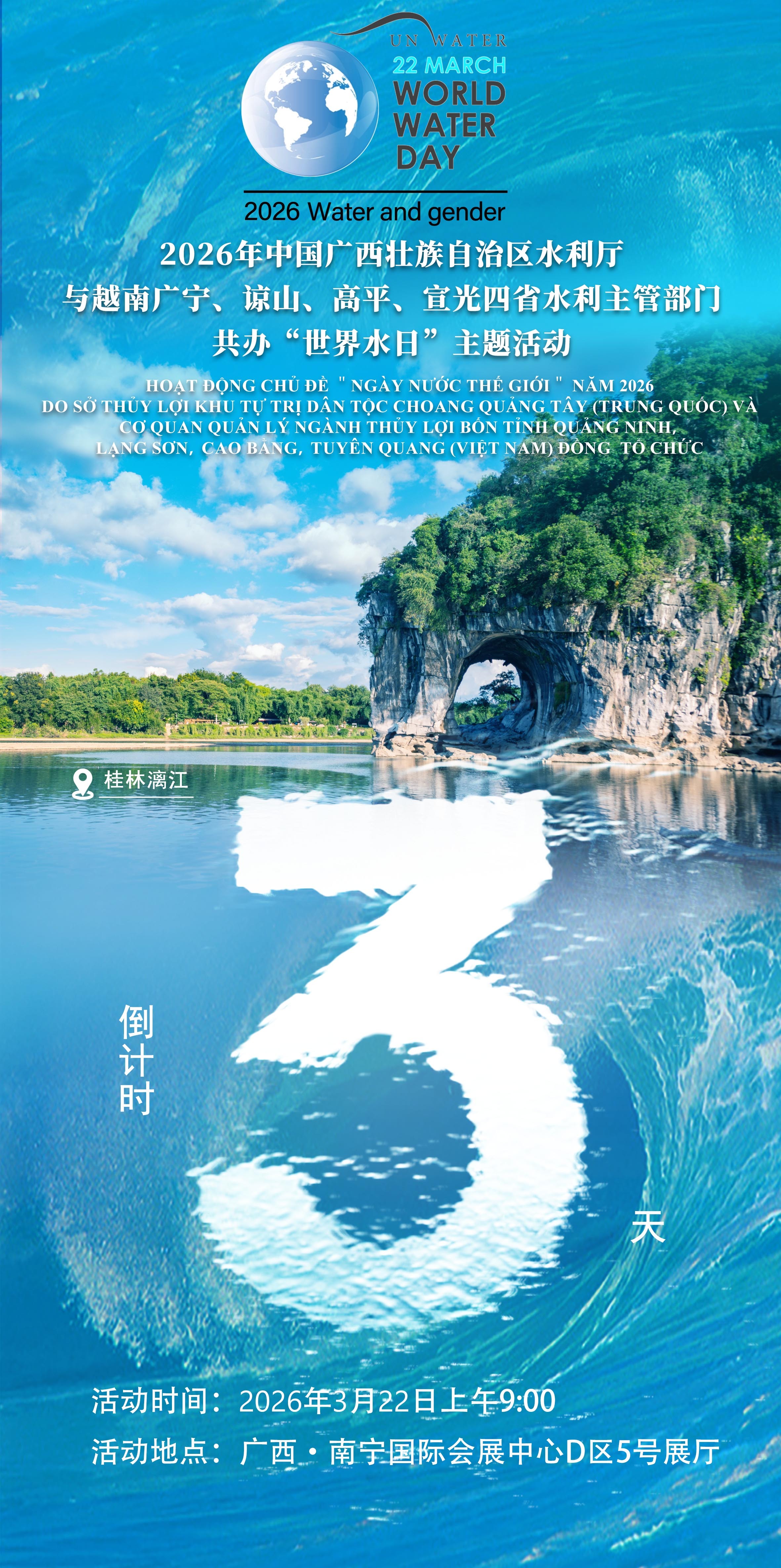 2026年中国广西壮族自治区水利厅与越南广宁、谅山、高平、宣光四省水利主管部门共办“世界水日”主题活动倒计时3天
