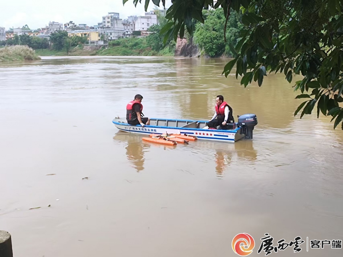 水文应急队员在崇左市天等县龙忙屯内涝区开展水下地形监测。自治区水文中心 供图